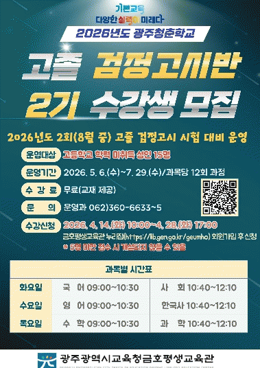 À̹ø °ËÁ¤°í½Ã¹ÝÀº ¡®±¤ÁÖûÃáÇб³¡¯ »ç¾÷ÀÇ Çϳª·Î, ¹è¿òÀÇ ½Ã±â¸¦ ³õÄ£ ¼ºÀε鿡°Ô º¸ÆíÀûÀÎ ±³À° ±âȸ¸¦ º¸ÀåÇØ Çз ÃëµæÀ» µ½°í Á¦2ÀÇ Àλý ¼³°è¸¦ Áö¿øÇϱâ À§ÇØ ¸¶·ÃµÆ´Ù.