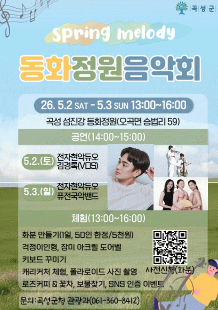 À̹ø À½¾Çȸ´Â ¿ÀÈÄ 1½ÃºÎÅÍ 4½Ã±îÁö ÁøÇàµÇ¸ç º½ÀÇ Á¤Ãë°¡ °¡µæÇÑ Á¤¿ø ¼Ó¿¡¼ À½¾Ç°ú üÇè, ÈÞ½ÄÀ» ÇÔ²² Áñ±æ ¼ö ÀÖ´Â º¹ÇÕ¹®È ÇÁ·Î±×·¥À¸·Î ¿î¿µµÈ´Ù.