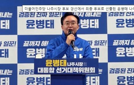 ´õºÒ¾î¹ÎÁÖ´ç Àü³²µµ´çÀº 8ÀÏ ³ªÁÖ½ÃÀå Èĺ¸ °æ¼± °á°ú¸¦ ¹ßÇ¥Çϰí À± Èĺ¸ÀÇ ½Â¸®¸¦ °ø½ÄÈÇß´Ù. À̹ø °æ¼±Àº Áö³ 6ÀϺÎÅÍ 7ÀϱîÁö ÀÌÆ²°£ ÁøÇàµÆÀ¸¸ç, ±Ç¸®´ç¿ø ÅõÇ¥ 50%¿Í ÀÏ¹Ý ½Ã¹Î ¿©·ÐÁ¶»ç 50%¸¦ ÇÕ»êÇÏ´Â ¹æ½ÄÀ¸·Î Ä¡·¯Á³´Ù.