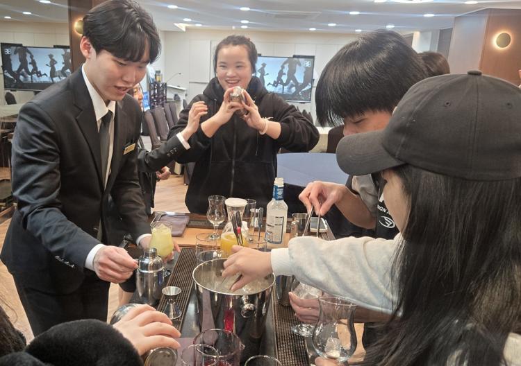 À̳¯ Âü¿©ÇÑ À¯ÇлýµéÀº ³ôÀº Âü¿©µµ¸¦ º¸ÀÌ¸ç ½ÇÁ¦ ½Ç½À ȯ°æ¿¡¼ Ä¿ÇÇ ÃßÃâ µîÀ» ¹è¿ì´Â ¹Ù¸®½ºÅ¸ üÇèÀ» ºñ·ÔÇØ, ĬÅ×ÀÏ Á¦Á¶ °úÁ¤°ú µµ±¸ »ç¿ë¹ýÀ» ÀÍÈ÷¸ç ÇöÀå°¨ ÀÖ´Â ±³À°À» °æÇèÇß´Ù. ¶ÇÇÑ Ä«Áö³ë üÇèÀ» ÅëÇØ °ÔÀÓ ÁøÇà ¹æ½Ä°ú ¼ºñ½º ¸Å³Ê¸¦ ¹è¿ì¸ç È£ÅÚ¡¤°ü±¤ »ê¾÷¿¡ ´ëÇÑ ÀÌÇØ¸¦ ³ôÀÌ´Â ½Ã°£À» °¡Á³´Ù.