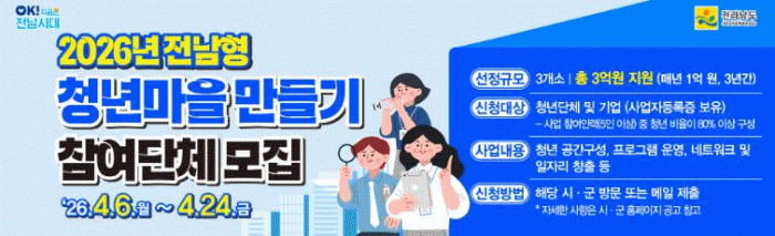 Àü³²µµ´Â ¿ÃÇØ ½Å±Ô»ç¾÷À¸·Î û³â¸¶À» Á¾·á ÀÌÈÄ¿¡µµ ¸¶À»ÀÌ Áö¼ÓÀûÀ¸·Î ¿î¿µµÇµµ·Ï Áö¿øÇÏ´Â ¡®Ã»³â ÀÚ¸³¸¶À» Ȱ¼ºÈ Áö¿ø»ç¾÷¡¯À» ÃßÁøÇÒ °èȹÀÌ´Ù.