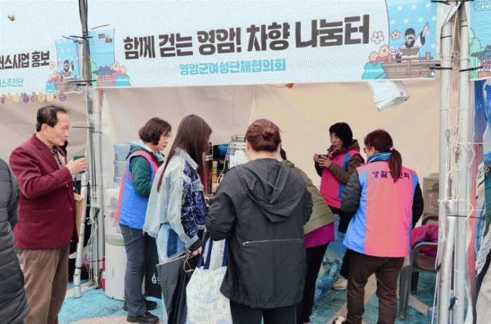 Çà»ç±â°£ µ¿¾È ÃÑ 54¸íÀÇ ¿©¼º´ÜüÇùÀÇȸ ÀÚ¿øºÀ»çÀÚµéÀÌ Âü¿©ÇØ ¸ÅÀÏ ¿ÀÀü 9½ÃºÎÅÍ ¿ÀÈÄ 6½Ã±îÁö À½·á ³ª´® ºÎ½º¸¦ ¿î¿µÇßÀ¸¸ç, ¿µ¾Ï±º ¿©¼º´ÜüÇùÀÇȸ ¼Ò¼Ó 11°³ ´Üü°¡ ¸±·¹ÀÌ ¹æ½ÄÀ¸·Î Âü¿©ÇØ Àǹ̸¦ ´õÇß´Ù.