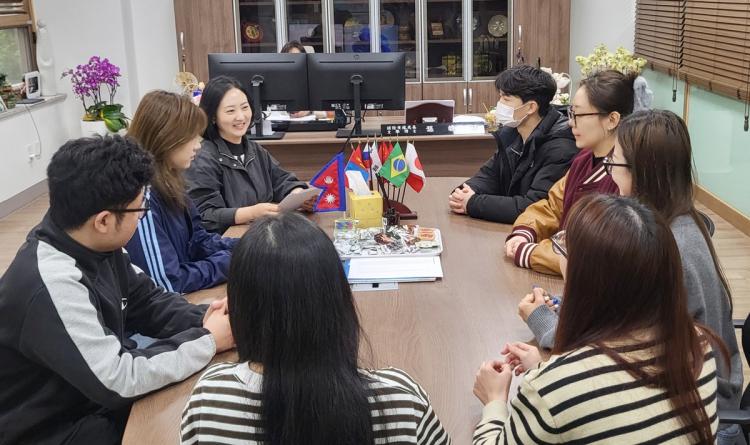 À¯ÇлýµéÀÇ ±³·ù Ȱ¼ºÈ¿Í ¾ÈÁ¤ÀûÀÎ ´ëÇÐ »ýȰ Áö¿ø ¹æ¾È ³íÀǸ¦ À§ÇØ ¸¶·ÃµÈ À̳¯ °£´ãȸ¿¡¼´Â ¿Ü±¹ÀÎ À¯Çлýȸ ȸÀå´Ü ¼Ò°³¿Í ¿ªÇÒÀ» °øÀ¯Çϰí, 1Çбâ À¯Çлýȸ ¿î¿µ °èȹ ¹× ±¹Á¦±³·ùó ÁÖ¿ä ÇÁ·Î±×·¥¿¡ ´ëÇÑ ¾È³»°¡ ÀÌ·ïÁ³´Ù.
