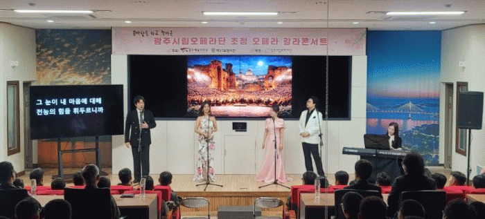 4¿ù15ÀÏ ±¤ÁÖ½Ãû ·Îºñ¿¡¼ ¿¸° ¡®¿ÀÆä¶ó THE °¡±îÀÌ¡¯´Â Á¡½É½Ã°£ ½Ã¹ÎµéÀÌ ÀÚ¿¬½º·´°Ô °ø¿¬À» Áñ±æ ¼ö ÀÖµµ·Ï ±â¿©Çß´Ù.