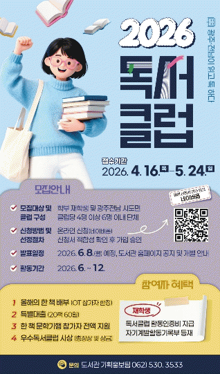 µ¶¼Å¬·´ ¼±Á¤ ½Ã Ȱµ¿ ±â°£ µ¿¾È ¡®2026 ¿ÃÇØÀÇ ÇÑ Ã¥¡¯ ¹«·á ¹èºÎ(OT Âü°¡ÀÚ ´ë»ó), ±Û¾²±â Ư°, ¹®ÇбâÇà Âü°¡ºñ Áö¿ø, µµ¼ ´ëÃ⠱Ǽö È®´ë µî ´Ù¾çÇÑ ÇýÅÃÀÌ Á¦°øµÇ¸ç, Ȱµ¿ Á¾·á ÈÄ¿¡´Â Æò°¡¸¦ ÅëÇØ ¿ì¼ö µ¶¼Å¬·´¿¡ ´ëÇÑ ÃÑÀå»ó ¹× Æ÷»ó±Ýµµ ÁÖ¾îÁø´Ù.