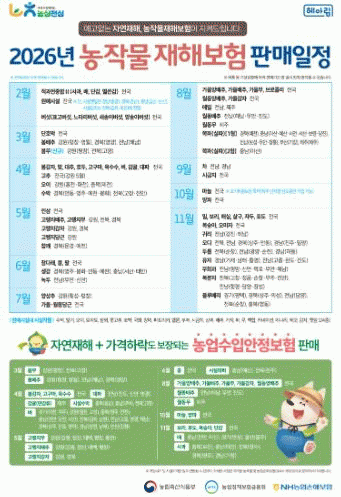 4¿ùºÎÅÍ º¡¤´ëÆÄ¡¤°íÃß µîÀ» ½ÃÀÛÀ¸·Î ǰ¸ñº°·Î ¼øÂ÷ °¡ÀÔÀÌ °¡´ÉÇϸç, °¡ÀÔÀ» ¹Ù¶ó´Â ³ó¾÷ÀÎÀº °¡±î¿î ³ó¡¤ÃàÇùÀ̳ª ¿ø¿¹³óÇù¿¡ ½ÅûÇÒ ¼ö ÀÖ´Ù.