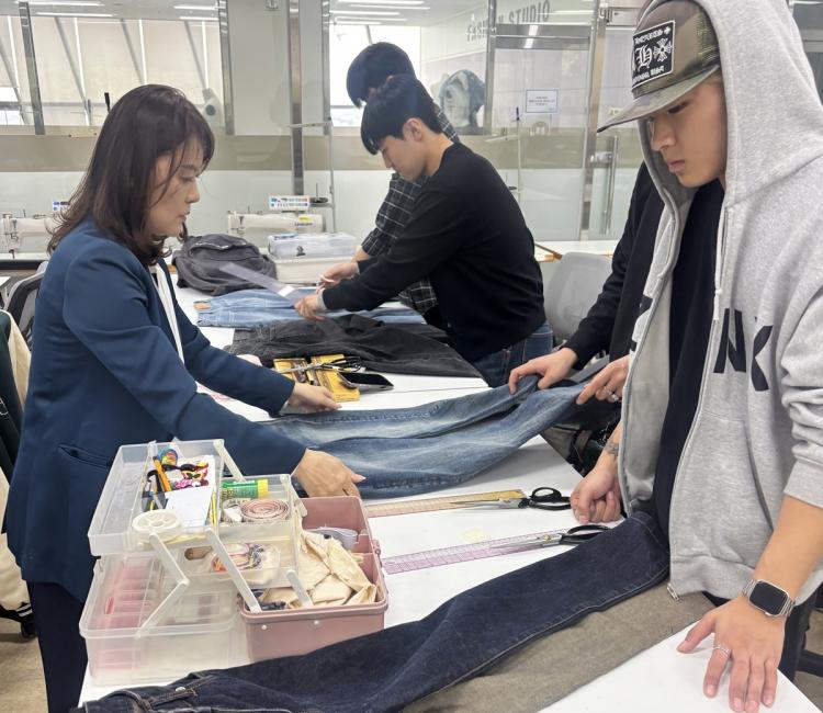 ÆÐ¼ÇµðÀÚÀÎÇаú¿Í e½ºÆ÷Ã÷»ê¾÷Çаú ÀçÇлýµéÀÌ ÇÔ²² Âü¿©ÇÑ °¡¿îµ¥ À̹ø ¼ö¾÷¿¡¼´Â Á÷Á¢ û¹ÙÁö¸¦ ÇØÃ¼ Àç´Ü ÈÄ A¶óÀÎ ½ºÄ¿Æ® Á¦ÀÛ ½Ç½ÀÀ» ÅëÇØ ¾÷»çÀÌŬ¸µ ÆÐ¼Ç Á¦ÀÛ °úÁ¤À» °æÇèÇϸç Àü°ø °£ Çù¾÷ °æÇèÀ» ½×¾Ò´Ù.