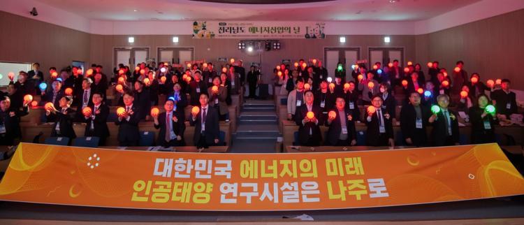 À±º´Å ³ªÁÖ½ÃÀåÀº ¡°Àü³² ¿¡³ÊÁö»ê¾÷ÀÇ ³¯Àº »êÇп¬°üÀÌ ÇÔ²² ÀÌ·ï¿Â ¼º°ú¸¦ È®ÀÎÇÏ°í ¹Ì·¡ ¿¡³ÊÁö»ê¾÷ÀÇ ¹æÇâÀ» °øÀ¯ÇÏ´Â ¶æ±íÀº ÀÚ¸®¡±¶ó¸ç ¡°ÀΰøÅÂ¾ç ¿¬±¸½Ã¼³ À¯Ä¡¸¦ ºñ·ÔÇØ Â÷¼¼´ë Àü·Â¸Á°ú Àü·Â¹ÝµµÃ¼ µî ±¹°¡ Àü·«»ê¾÷ À°¼º¿¡ ¼Óµµ¸¦ ³» ³ªÁÖ¸¦ ´ëÇѹα¹ ¿¡³ÊÁö½Å»ê¾÷ÀÇ ´ëÇ¥ °ÅÁ¡À¸·Î ¸¸µé°Ú´Ù¡±°í ¸»Çß´Ù.