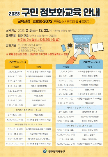 ±¸Ã» ³» Á¤º¸È±³À°Àº ¡ãÄÄÇ»ÅÍ¡¤ÀÎÅÍ³Ý È°¿ë ±âÃʰúÁ¤ ¡ã¹®¼ÀÛ¼º¡¤¿¢¼¿¡¤ÆÄ¿öÆ÷ÀÎÆ® ±âÃʰúÁ¤ ¡ã½º¸¶Æ®Æù, SNS, À̹ÌÁö¡¤µ¿¿µ»ó ÆíÁý °úÁ¤À¸·Î ³ª´² ³»´Þ ÃʺÎÅÍ ¿ÀÀü¹Ý(¿ÀÀü 10½Ã~12½Ã), ¿ÀÈĹÝ(¿ÀÈÄ 2½Ã~4½Ã)À¸·Î ÁøÇàµÈ´Ù.