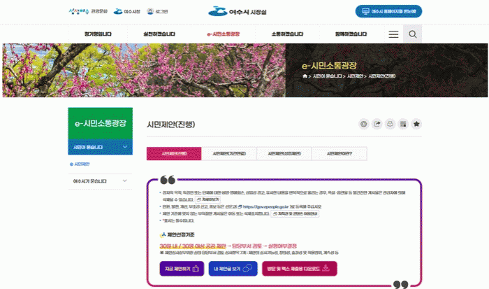 30ÀÏ ¿©¼ö½Ã´Â ½Ã¹ÎÀÌ Á¦¾ÈÇϰí, ½Ã¹Î¿¡°Ô ¹¯°í ´äÇÏ´Â ¼ÒÅëä³ÎÀÎ ¡®e-½Ã¹Î¼ÒÅ뱤À塯À» °³¼³ÇØ ¿î¿µÇÑ´Ù°í ¹àÇû´Ù.
