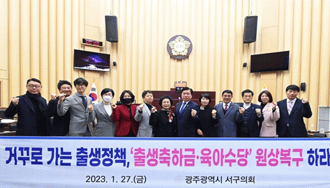 Àü ÀÇ¿øÀº ¡°±¤Áֽð¡ '¾ÆÀÌ ³º¾Æ Ű¿ì±â ÁÁÀº ±¤ÁÖ ¸¸µé±â'¶ó´Â ½½·Î°ÇÀ» ³»°É°í Ãâ»ýÃàÇÏ±Ý ÆóÁö¿Í À°¾Æ¼ö´ç Ãà¼Ò¶ó´Â °Ñ°ú ¼ÓÀÌ ´Ù¸¥ ÇàÁ¤À¸·Î ½Ã¹ÎµéÀ» ¿ì·ÕÇϰí ÀÖ´Ù¡±¶ó¸ç ¹ß¾ðÇß´Ù.