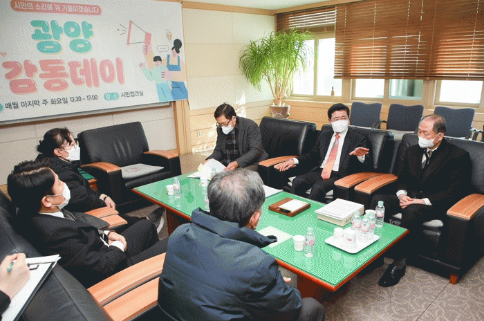 ÇÑÆí, ¡®±¤¾ç °¨µ¿µ¥ÀÌ¡¯´Â ½Ã¹Î ´©±¸³ª ½ÃÀå(ºÎ½ÃÀå, ±¹Àå)À» ¸¸³ª ½ÃÁ¤¿¡ ´ëÇÑ ÀǰߵéÀ» ÀÚÀ¯·Ó°Ô À̾߱âÇÔÀ¸·Î½á ½Ã¹ÎÀÇ °íÃæÇØ¼Ò´Â ¹°·Ð ½ÃÀÇ ¹ßÀü ¹æÇâÀ» ¸ð»öÇÏ´Â ÀÚ¸®·Î ¸Å¿ù ÇÑÂ÷·Ê ±¤¾ç½Ãû 2Ãþ ½Ã¹ÎÁ¢°ß½Ç¿¡¼ ¿¸®°í ÀÖ´Ù.