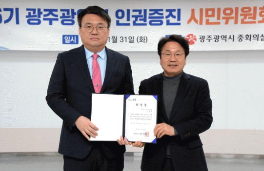 ƯÈ÷ °±âÁ¤ ±¤ÁÖ½ÃÀåµµ ÀαÇÁõÁø½Ã¹ÎÀ§¿øÈ¸ 6±â Ãâ¹ü½Ä¿¡ Âü¼®ÇØ À§¿øÈ¸ ¿ªÇÒ È®´ë¿Í ³»½Çȸ¦ ´çºÎÇß´Ù.
