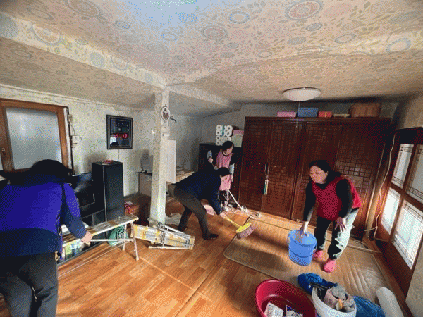 º¹Áö±âµ¿´ë´Â ¸ùź¸é ¸ÂÃãÇüº¹ÁöÆÀ¿¡¼ ¹ß±¼ÇÑ º¹Áö»ç°¢Áö´ë 1°¡±¸¸¦ ´ë»óÀ¸·Î Áý¾È ³»ºÎ µµ¹èÀåÆÇ¿¡ °õÆÎÀ̰¡ ÇǾî À§»ý»ó ¹®Á¦°¡ ÀÖ´ø ´ë»óÀÚÀÇ º®Áö¿Í ÀåÆÇÀ» ±³Ã¼Çϴ Ȱµ¿À» ½Ç½ÃÇß´Ù.