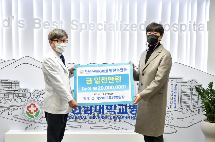 ȼøÀü³²´ëÇб³º´¿øÀº Áö³ 27ÀÏ º´¿ø 5Ãþ Á¢°ß½Ç¿¡¼ Á¤¿ë¿¬ º´¿øÀå, ±èÀοµ Áø·áóÀå µî º´¿ø °ü°èÀÚ¿Í ºñ¿À¸Þµå¿ä¾çº´¿ø ±èÀÎ±Ô ¿øÀå µîÀÌ Âü¼®ÇÑ °¡¿îµ¥ ¹ßÀüÈÄ¿ø±Ý 1õ¸¸¿ø Àü´Þ½ÄÀ» °¡Á³´Ù.
