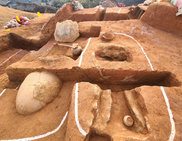 Áö³ 12¿ùºÎÅÍ ÁøÇàµÈ À̹ø 17È£ºÐ ¹ß±¼Á¶»ç °á°ú ¿Ë°ü¹¦ 7±â, ¸ñ°ü¹¦ 1±â, ¸Å³³Åä±â 6±â, Àΰñ, À¯°ø±¤±¸¼ÒÈ£, Àå½Å±¸, À̽Ä, ±Ý¼ÓÁ¦°í¸® µîÀÌ È®ÀεÆÀ¸¸ç, ¿Ë°ü¹¦´Â ¸ñ°ü¹¦ ¿·À¸·Î ´ëºÎºÐ ³²ºÏ¹æÇâÀ¸·Î¡®U¡¯ÀÚÇüÀÇ ´ëÇü¿Ë°üÀ» ÀÌ¿ëÇÏ¿© ÇÕ±¸½ÄÀ¸·Î Ⱦ·Ä ¾ÈÄ¡µÈ ÇüÅ·Π¹ß°ßµÆ°í, ÆíÆòÇÑ ¼®À縦 ÀÌ¿ëÇÏ¿© ÀÔ±¸¸¦ ¸·Àº ÈÄ È¸¹é»öÁ¡ÁúÅä·Î ¹ÐºÀÇÑ ÇüÅÂÀÇ ´Ü¿Ëµµ 2±â È®ÀεƴÙ.