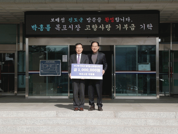 ¹ÚÈ«·ü ¸ñÆ÷½ÃÀåÀº ¡°Áøµµ´Â Á¦°¡ ³ª°í ÀÚ¶õ °÷À¸·Î °íÇâÀÇ ¹ßÀüÀ» À§ÇØ ±âºÎ¸¦ ÇÏ°Ô µÆ´Ù¡±¸ç ¡°Á¦ Á¤¼ºÀÌ Áøµµ Áö¿ª °æÁ¦È°¼ºÈ¿Í Áֹκ¹Áö Çâ»ó¿¡ ±â¿©µÇ±â¸¦ ¹Ù¶õ´Ù¡±°í ¸»Çß´Ù.
