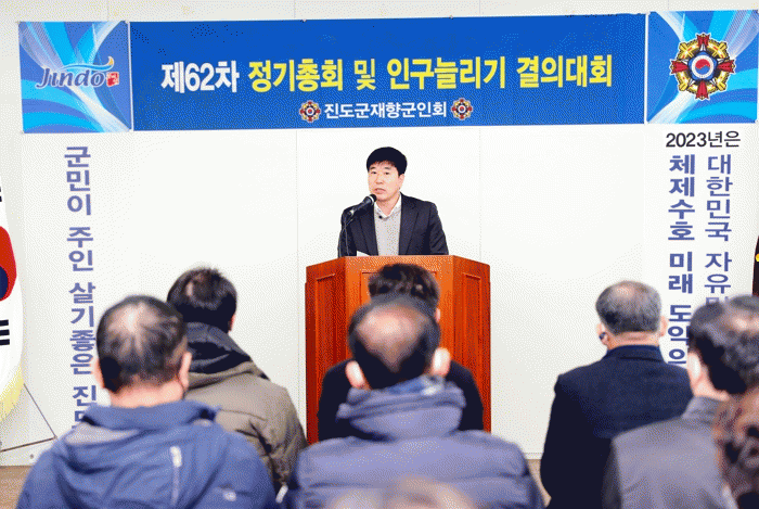 Áøµµ±º ÀçÇⱺÀÎȸ´Â Àα¸ ´Ã¸®±â¸¦ À§ÇÑ °áÀÇ´ëȸ¸¦ ¿°í, ÇѸ¶À½ ÇѶæÀ¸·Î ÇÔ²² ¾ÕÀå¼³ °ÍÀ» ´ÙÁüÇÏ´Â °áÀǹ®À» äÅÃÇß´Ù.