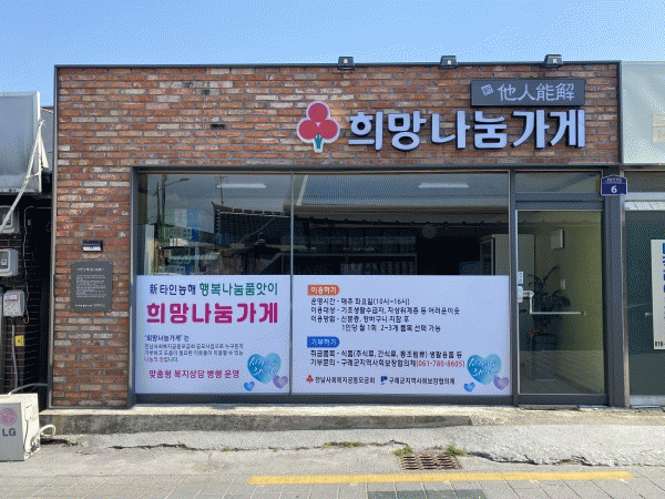 ±¸·Ê Èñ¸Á³ª´®°¡°Ô´Â Àü³² »çȸº¹Áö°øµ¿¸ð±Ýȸ °ø¸ð»ç¾÷À¸·Î ±¸·Ê±ºÁö¿ª»çȸº¸ÀåÇùÀÇü¿¡¼ ¿î¿µÇϰí Áö¿ª ÁÖ¹ÎÀÌ ½Äǰ·ù, »ýȰ¿ëǰ µîÀ» ±âºÎÇÏ¸é ±âÃÊ»ýȰ¼ö±ÞÀÚ, Â÷»óÀ§°èÃþ µî ¾î·Á¿î ÀÌ¿ôÀÌ ¿ù 1ȸ¿¡ ÇÑÇÏ¿© 2~3ǰ¸ñÀ» ¹«·á·Î ÀÌ¿ëÇÒ ¼ö ÀÖ´Â °ø°£ÀÌ´Ù.