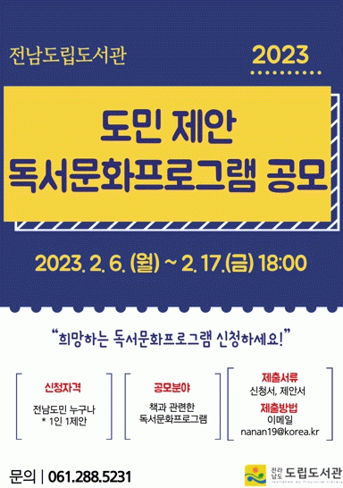 Á¦¾È ºÐ¾ß´Â À¯¾ÆºÎÅÍ ¾î¸£½Å±îÁö Àü ¿¬·É ´ë»ó Ã¥°ú °ü·ÃÇÑ µ¶¼¹®ÈÇÁ·Î±×·¥À¸·Î µµ¼°ü¿¡ °ü½É ÀÖ´Â µµ¹ÎÀÌ¸é ´©±¸³ª Âü¿©ÇÒ ¼ö ÀÖ´Ù. ½Åû¼¿Í Á¦¾È¼¸¦ ÀÛ¼ºÇØ ¿À´Â 17ÀϱîÁö ÀüÀÚ¿ìÆíÀ¸·Î Á¦ÃâÇÏ¸é µÈ´Ù.