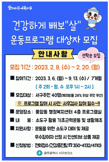 À̹ø ÇÁ·Î±×·¥Àº¡®Èú¸² ½°,ÅÍ °Ç°¸¶À»¡¯À» BI(Brand Identity)·Î ³»»õ¿î dz¾Ïµ¿°ú Çù¾÷ÇØ ¿À´Â 3¿ù 6ÀϺÎÅÍ 9¿ù 13ÀϱîÁö ÁÖ 2ȸ(¿ù,¼ö / 13:00~14:00) dz¾Ïµ¿ ÇàÁ¤º¹Áö¼¾ÅÍ ÇÁ·Î±×·¥½Ç¿¡¼ ¿î¿µµÉ ¿¹Á¤ÀÌ¸ç ¸ðÁý´ë»óÀº üÁö¹æ·ü 28% ÀÌ»óÀÎ ¼±¸ÁÖ¹ÎÀ¸·Î Àüȸ¦ ÅëÇØ ½Åû °¡´ÉÇÏ´Ù.