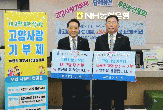 À̳¯ ÀÓÅà µ¿±¸Ã»ÀåÀº ±è»ê ¹«¾È±º¼ö¿Í ÇÔ²² ¹«¾È±º °ü³» NH³óÇùÀºÇàÀ» ¹æ¹®ÇØ ¾ç ÁöÀÚü¿¡ ¼·Î °íÇâ»ç¶û±âºÎ±ÝÀ» ±âºÎÇϰí, Àû±ØÀûÀÎ Âü¿©¸¦ µ¶·ÁÇß´Ù.