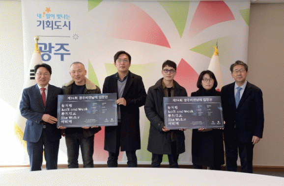 ÇÑÆí, Á¦14ȸ ±¤ÁÖºñ¿£³¯·¹ ¡®¹°Ã³·³ ºÎµå·´°í ¿©¸®°Ô¡¯(soft and weak like water)´Â 4¿ù7ÀϺÎÅÍ 7¿ù9ÀϱîÁö 94ÀÏ °£ ±¤ÁÖºñ¿£³¯·¹ Àü½Ã°üÀ» ºñ·ÔÇØ ±¹¸³±¤ÁÖ¹Ú¹°°ü, ¹«°¢»ç, ¿¹¼ú°ø°£ Áý, È£¶û°¡½Ã³ª¹« ¾ÆÆ®Æú¸®°ï µî¿¡¼ °³ÃֵȴÙ.