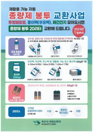 ȯ°æ¿À¿°À» ¿¹¹æÇϰí, ÀÚ¿ø³¶ºñ¸¦ ÁÙÀ̱â À§ÇØ ½ÃÇàÇÏ´Â À̹ø »ç¾÷Àº Æó°ÇÀüÁö¡¤Á¾ÀÌÆÑ¡¤Åõ¸íÆäÆ®º´À» ÀÏÁ¤·® ¸ð¾Æ µ¿ÇàÁ¤º¹Áö¼¾Å͸¦ ¹æ¹®Çϸé Àç»ç¿ë Á¾·®Á¦ºÀÅõ·Î ±³È¯¹ÞÀ» ¼ö ÀÖ´Ù.
