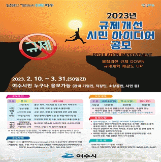 °ø¸ð´Â ¿À´Â 10ÀϺÎÅÍ 3¿ù 31ÀϱîÁö ¿©¼ö½Ã¹Î ´©±¸³ª ÀÏ»ó»ýȰ¿¡ ¼û¾îÀÖ´Â ºÒÇÕ¸®ÇÑ ±ÔÁ¦¿Í ±â¾÷ Ȱµ¿À» ÀúÇØÇÏ´Â ±ÔÁ¦ µî¿¡ ´ëÇÑ ¾ÆÀ̵ð¾î¸¦ ÀÀ¸ðÇÏ¸é µÈ´Ù.