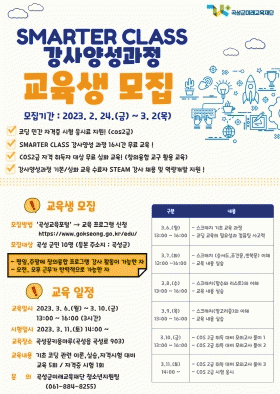 ¡®SMARTER CLASS °»ç¾ç¼º°úÁ¤¡¯Àº Áö¿ª ³» ±³À° ÀÏÀÚ¸® ¿¬°è¸¦ Áö¿øÇÏ°í ±³À° °»çÀÇ ¿ª·® °È¸¦ µµ¸ðÇÏ´Â »ç¾÷ÀÌ´Ù. Áö¿ª ³»¿¡¼ âÀÇÀ¶ÇÕ ±³À° ¹× ¹Ì·¡»ê¾÷ °ü·Ã ÇÁ·Î±×·¥ ¿î¿µÀ» À§ÇÑ Àü¹® ÀηÂÀ» ¾ç¼ºÇÑ´Ù.