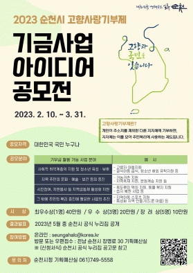 ¼øÃµ½Ã °ü°èÀÚ´Â ¡°±¹¹ÎµéÀÌ ¼øÃµ¿¡ ±âºÎÇØÁֽбâºÎ±ÝÀ» ¶æ±í°Ô »ç¿ëÇϱâ À§ÇØ °ø¸ðÀüÀ» ÁøÇàÇÑ´Ù¡±°í ¹àÈ÷¸ç, ¡°¼øÃµÀÇ Æ¯»öÀ» »ì¸± ¼ö ÀÖ´Â µ¶Ã¢ÀûÀÎ ¾ÆÀ̵ð¾î°¡ °ø¸ðµÇµµ·Ï ¸¹Àº ºÐµéÀÇ °ü½É°ú ¼º¿ø ºÎʵ台´Ù¡±°í ¹àÇû´Ù.