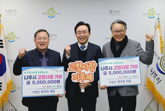 À±º´Å ³ªÁÖ½ÃÀåÀº ¡°³ªÁÖ¿¡ ¾ÖÁ¤À» °®°í °íÇâ»ç¶û±âºÎÁ¦¿¡ µ¿ÂüÇØÁØ µÎ ±â¾÷Àβ² Áø½ÉÀ¸·Î °¨»çµå¸°´Ù¡±¸ç ¡°±â¾÷Çϱâ ÁÁÀº µµ½Ã, û³âÀÌ ¾ÈÁ¤ÀûÀ¸·Î Á¤ÂøÇØ ÀÏÇÒ ¼ö ÀÖ´Â ±Ù·Î ȯ°æÀ» ¸¸µå´Âµ¥ ÃÖ¼±À» ´ÙÇϰڴ١±°í °í¸¶¿òÀ» Ç¥Çß´Ù.