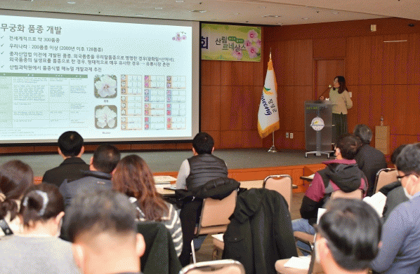 °£´ãȸ¿¡´Â »ê¸²Ã» °ü°èÀÚ 10¿© ¸í°ú Àü±¹ ÁöÀÚü ´ã´ç °ø¹«¿ø 40¿© ¸íÀÌ Âü¼®Çß´Ù. ¹«±ÃÈÀÇ Ç°Á¾Àû Ư¼ºÀ» ÀÌÇØÇÒ ¼ö ÀÖ´Â »ê¸²°úÇпø ½ÅÇѳª ¹Ú»çÀÇ °ÀÇ¿¡ ÀÌ¾î ¹«±ÃȰø¿ø Á¶¼º¿¡ ¾ÕÀå¼°í ÀÖ´Â µÎ»ê±×·ì ±èµæÈ¯ ºÎÀåÀÌ µ¿»ê ¼³°è ³ëÇϿ츦 Àü¼öÇß´Ù.