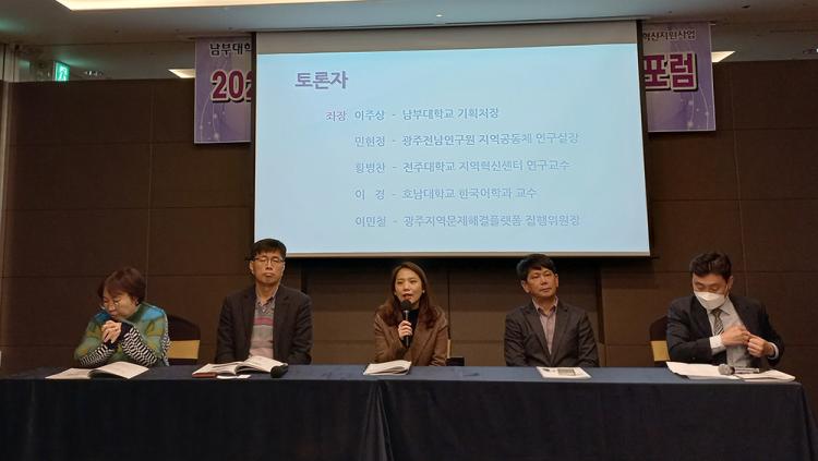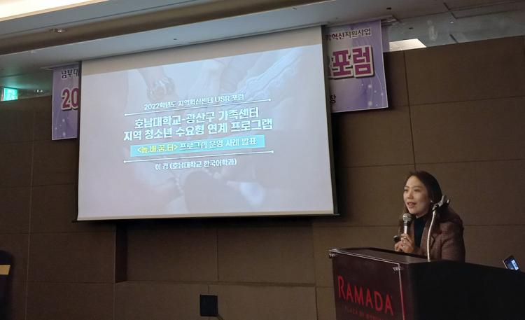 [ÅåÅå´º½º]È£³²´ëÇб³ Çѱ¹¾îÇаú ÀÌ°æ ±³¼ö´Â 2¿ù 15ÀÏ ³²ºÎ´ëÇб³ Áö¿ªÇõ½Å¼¾ÅÍ ÁÖÃÖ·Î ¶ó¸¶´ÙÇöóÀÚ 4Ãþ¿¡¼ ¿¸° ¡®2022Çг⵵ ´ëÇÐÇõ½ÅÁö¿ø»ç¾÷ USR Æ÷·³¡¯¿¡¼ ºñ±³°úÅëÇÕÁö¿ø¼¾ÅÍ(¼¾ÅÍÀå ÁÂÇö¼÷) Áö¿øÀ» ¹Þ¾Æ ¿î¿µÇÑ ¡®È£³²´ëÇб³-±¤»ê±¸ °¡Á·¼¾ÅÍ Áö¿ª û¼Ò³â ¼ö¿äÇü ¿¬°è ÇÁ·Î±×·¥: ³î¹è²ÞÅÍ ÇÁ·Î±×·¥ ¿î¿µ »ç·Ê¡¯¿¡ ´ëÇØ ÁÖÁ¦ ¹ßÇ¥¸¦ ÁøÇàÇß´Ù.