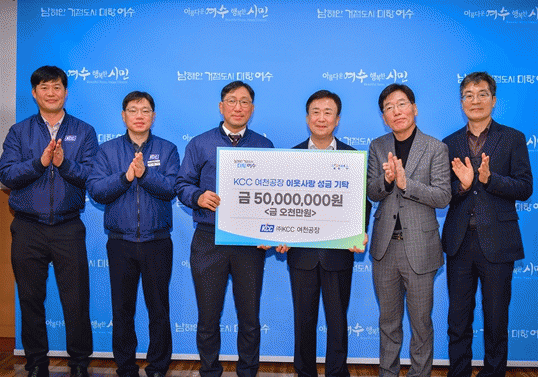 Á¤±â¸í ¿©¼ö½ÃÀåÀº ¡°¸Å³â »çȸ°øÇå Ȱµ¿À» ÅëÇØ ³ª´®¹®È È®»ê¿¡ ³ë·ÂÇØ ÁֽŠ(ÁÖ)KCC ¿©Ãµ°øÀå¿¡ °¨»ç¸¦ µå¸°´Ù¡±¸ç ¡°À̹ø ±âʱÝÀÌ º¹ÁöÀ§±â°¡±¸ÀÇ µû¶æÇÑ ÁÖ°Å °ø°£ ¸¶·Ã¿¡ Àß ¾²ÀÏ ¼ö ÀÖµµ·Ï »ç¾÷ÃßÁø¿¡ ÃÖ¼±À» ´ÙÇϰڴ١±°í È´äÇß´Ù.