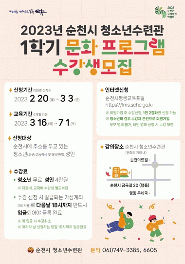 ¼ö° ½ÅûÀº ¼±Âø¼ø Á¢¼ö·Î ¼øÃµ½ÃÆò»ý±³À°Æ÷Åп¡¼ ÇÒ ¼ö ÀÖ°í, Á¤¿øÀÇ 60%°¡ ¸ðÁýµÇ¸é °Á°¡ °³¼³µÈ´Ù.