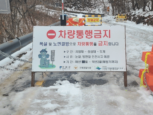 Áö³ 2022³â 12¿ù 1ÀϺÎÅÍ °Ü¿ïö µµ·ÎÀÇ °áºù¿¡ µû¸¥ ±³Åë»ç°í¸¦ ¿¹¹æÇϰíÀÚ ÃµÀº»ç ÁÖÂ÷Àå ÀÔ±¸ºÎÅÍ ´Þ±Ã»ï°Å¸® L=14km ±¸°£À» Àü¸é ÅëÁ¦ÇßÀ¸³ª, ÃÖ±Ù ±âÈÄ º¯È ¹× °Ü¿ïö °ü±¤¼ö¿ä Áõ°¡¿¡ µû¶ó 2023³â 2¿ù 15ÀϺÎÅÍ ºÎºÐ ÇØÁ¦¸¦ ½ÃÇàÇÑ´Ù.