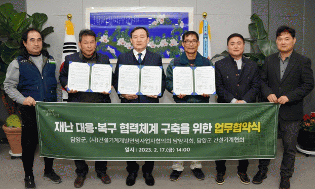 ´ã¾ç±ºÀº 17ÀÏ °¢Á¾ À糡¤ÀçÇØ·ÎºÎÅÍ ½Å¼ÓÇϰí È¿À²ÀûÀÎ ´ëÀÀ, ±ä±Þº¹±¸¸¦ À§ÇÑ ÁßÀåºñ µ¿¿øÀ» À§ÇØ (»ç)°Ç¼³±â°è°³º°¿¬¸í»ç¾÷ÀÚÇùÀÇȸ ´ã¾çÁöȸ, ´ã¾ç±º °Ç¼³±â°èÇùȸ¿Í Àç³ ´ëÀÀ¡¤º¹±¸ Çù·Âü°è ±¸ÃàÀ» À§ÇÑ ¾÷¹«Çù¾àÀ» ü°áÇß´Ù°í ¹àÇû´Ù.