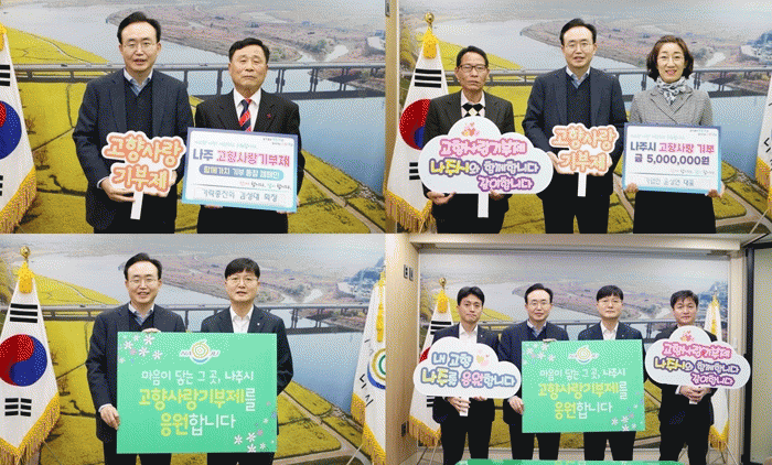 Àü¶ó³²µµ ³ªÁÖ½Ã(½ÃÀå À±º´ÅÂ)´Â ÃÖ±Ù ¾ð·ÐÀÎÀÌÀÚ °¡¶ôÁ¾Ä£È¸ÀåÀÎ ±è¼º´ë ¾¾, ¹Ú³»Ãá NH³óÇùÀºÇà ±¤ÁÖ¿µ¾÷º»ºÎÀå, ±â¾÷ÀÎ À±¼º¿¬ ´ëÇ¥°¡ °íÇâ»ç¶û±âºÎ¾×À» °¢°¢ ±âŹÇß´Ù°í 18ÀÏ ¹àÇû´Ù.