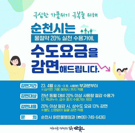 ÇÏÁö¸¸, ÇöÀç ¹°¼Òºñ·®À» °¨¾ÈÇϸé ÇâÈÄ ½Ä¼ö³°ú ³ó¾÷ ¹× °ø¾÷¿ë¼ö ºÎÁ· µî ½Ã¹ÎÀÇ ºÒÆí°ú °íÅëÀÌ ´õ¿í Ä¿Áú °ÍÀ¸·Î ¿¹»óµÇ¾î Àý¼ö ¿îµ¿ Àû±Ø Âü¿©¸¦ À§ÇØ ¹° Àý¾à ¼ö¿ë°¡¿¡ ´ëÇØ ¿ä±Ý°¨¸éÀ» ½ÃÇàÇϱâ·Î Çß´Ù.