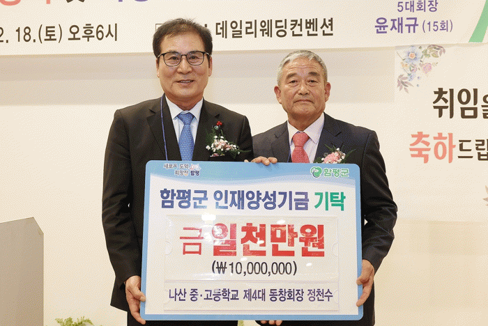 Á¤Ãµ¼ö ȸÀåÀº Áö³ÇØ ÇÔÆò±º¿¡ ÀÎÀç¾ç¼º±â±Ý 1¹é¸¸¿øÀ» Àü´ÞÇÑ µ¥ ÀÌ¾î ¿ÃÇØµµ ±âºÎ¸¦ À̾¸ç Áö¿ª »çȸ¿¡ ±Í°¨ÀÌ µÇ°í ÀÖ´Ù.