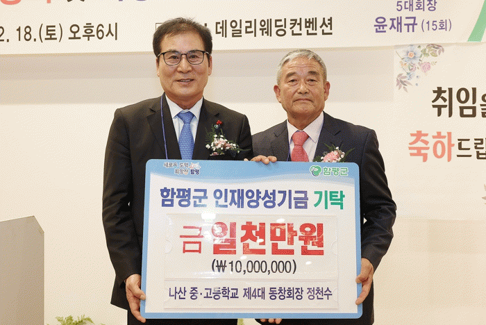 Á¤Ãµ¼ö ȸÀåÀº Áö³ÇØ ÇÔÆò±º¿¡ ÀÎÀç¾ç¼º±â±Ý 1¹é¸¸¿øÀ» Àü´ÞÇÑ µ¥ ÀÌ¾î ¿ÃÇØµµ ±âºÎ¸¦ À̾¸ç Áö¿ª »çȸ¿¡ ±Í°¨ÀÌ µÇ°í ÀÖ´Ù.