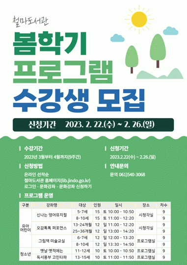 ÇÁ·Î±×·¥Àº µ¶¼¡¤¹®È¡¤¿¹¼ú µî ´Ù¾çÇÑ ÁÖÁ¦ÀÇ 5°³ °Á·ΠÀç·áºñ´Â °³ÀÎ ºÎ´ãÀ̸ç, ¼ö°·á´Â ¹«·áÀÌ´Ù.