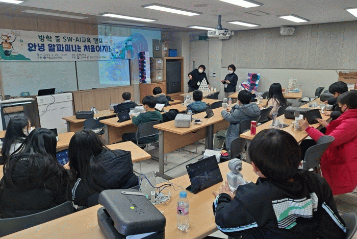 À̹ø Ä·ÇÁ´Â ¼øÃµ´ëÇб³ ÄÄÇ»ÅÍ ±³À°°ú¿Í ¿¬°èÇÏ¿© ¾ËÆÄ¹Ì´Ï ·Îº¿ÀÇ ¿ø¸®, ºñÀü ÀνÄ, µ¿ÀÛ Á¦¾î µîÀ» üÇèÇϰí, ºí·Ï ÄÚµùÀ» ÅëÇØ Á÷Á¢ ¾ËÆÄ¹Ì´Ï¸¦ ÀÛµ¿ÇØ º¸´Â µî ´Ùä·Î¿î ³»¿ëÀ¸·Î ¿î¿µµÆ´Ù.