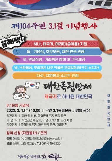 3.1Àý ±â³äÇà»ç´Â µ¶¸³¸¸¼¼ Ã߸𹫿ëÀ» ½ÃÀÛÀ¸·Î µ¶¸³¼±¾ð¼ ³¶µ¶, ±â³ä»ç, 3.1Àý ³ë·¡ Á¦Ã¢, ±×³¯ÀÇ ÇÔ¼ºÀ» ÀçÇöÇÑ ¿¬±Ø°ø¿¬°ú ¸¸¼¼»ï⠰Ÿ®ÇàÁøÀ¸·Î ÁøÇàµÈ´Ù.