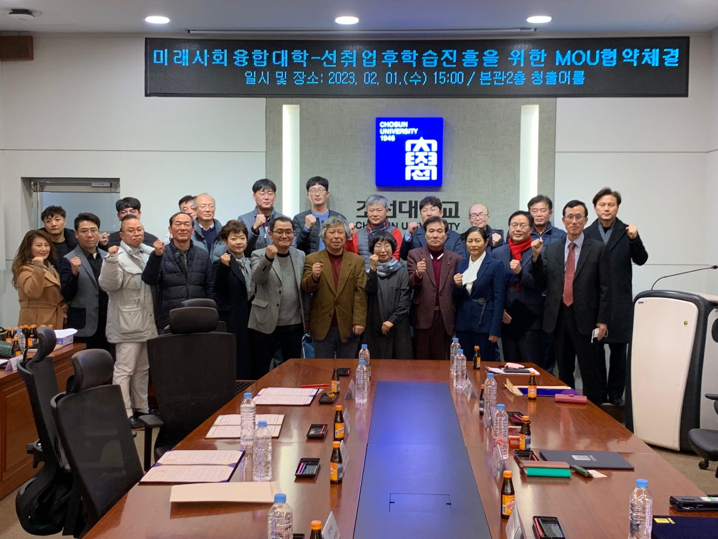 ÃÖ±Ù Á¶¼±´ëÇб³ º»°ü¿¡¼ ÁøÇàµÈ Çù¾à½Ä¿¡´Â Á¶¼±´ë ¹Ì·¡»çȸÀ¶ÇÕ´ëÇÐ ½Å»ê¾÷À¶ÇÕÇкΠÀ¯°üÁ¾ ÇкÎÀå, ÈÞ¸ÕÀ¶ÇÕ¼ºñ½ºÇкΠ¹®½Â·Ä ÇкÎÀå, ÈÞ¸ÕÀ¶ÇÕ¼ºñ½ºÇкΠÁ¤±â¼® ±³¼ö°¡ Âü¼®ÇßÀ¸¸ç, Àü±¹±Ý¼Ó³ëµ¿Á¶ÇÕ ±â¾ÆÀÚµ¿Â÷ÁöºÎ ±¤ÁÖÁöȸ ¿Ü 31°³ ¾÷ü ´ëÇ¥°¡ Âü¼®Çß´Ù.