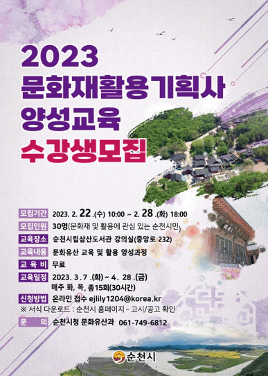 ¼øÃµ½Ã °ü°èÀÚ´Â ¡°À̹ø ±³À°ÀÌ Áö¿ª ¹®ÈÀ¯»êȰ¿ëÀÇ Àü¹®ÀûÀΠü°è¸¦ Á¶¼ºÇϴ ù°ÉÀ½ÀÌ µÉ °Í¡±À̶ó¸ç ¡°¹®ÈÀç ¹× È°¿ë¿¡ °ü½É ÀÖ´Â ½Ã¹ÎµéÀÇ ¸¹Àº °ü½É°ú Àû±ØÀûÀÎ Âü¿©¸¦ ¹Ù¶õ´Ù¡±¶ó°í ¹àÇû´Ù.