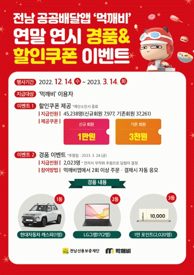 Àü¶ó³²µµ¿¡¼´Â ¸Ô±úºñÀÇ ÀÌ¿ë Ȱ¼ºÈ¸¦ À§ÇØ ½Å±Ôȸ¿øÀ» ´ë»óÀ¸·Î 5õ¿ø ÇÒÀÎÄíÆùÀ» Áö±ÞÇϰí ÀÖÀ¸¸ç, ¿À´Â 3¿ù 14ÀϱîÁö µÎ ¹ø ÀÌ»ó ÁÖ¹®ÇÑ ÀÌ¿ëÀÚ¸¦ ´ë»óÀ¸·Î °æÇ°À̺¥Æ®¸¦ ÁøÇà ÁßÀÌ´Ù. ±× ¿Ü ÀÚ¼¼ÇÑ »çÇ×Àº ¸Ô±úºñ ¾ÛÀ» ÅëÇØ È®ÀÎÇÒ ¼ö ÀÖ´Ù.
