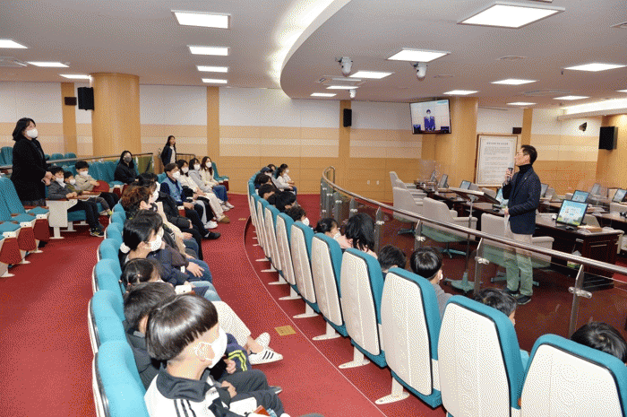 ´Ã»ç¶û¾Æµ¿¼¾ÅÍ ÇлýµéÀº »ç¹«±¹ Á÷¿øÀÇ ¾È³»¸¦ ¹Þ¾Æ º»È¸ÀÇÀå °÷°÷À» µÑ·¯º» ÈÄ ½ÃÀÇȸÀÇ ±â´É°ú ¿ªÇÒ¿¡ ´ëÇØ ¼³¸íÀ» µè°í ½ÃÀÇȸ°¡ ȸÀǸ¦ ÁøÇàÇÏ´Â ¿µ»óÀ» ½ÃûÇß´Ù. ÀÌ¾î¼ ÇÔ²²ÇÑ ¹Úö¼ö ÀÇ¿ø¿¡°Ô ±Ã±ÝÇÑ »çÇ×À» ¹¯°í Áö¿ª»çȸ¿¡ °³¼±ÀÌ ÇÊ¿äÇÑ ºÎºÐÀ» °ÇÀÇÇÏ´Â µî ¼ÒÅëÀÇ ½Ã°£À» °¡Á³´Ù.