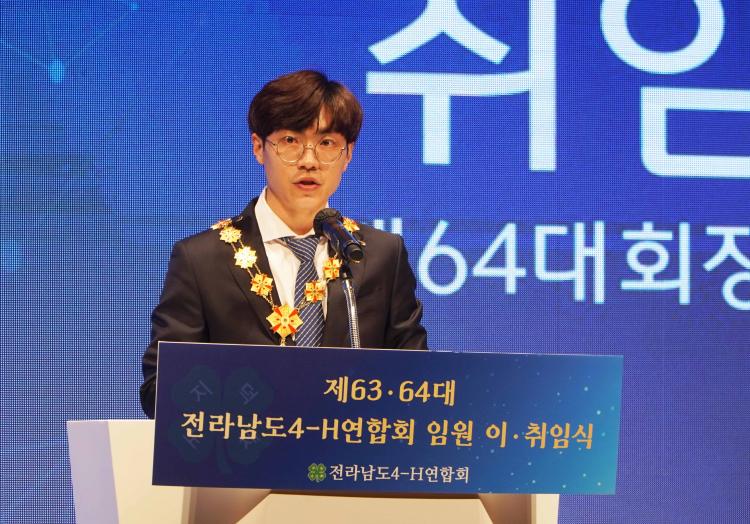 ·ùÁøÈ£ ½ÅÀÓȸÀåÀº ÃëÀӻ縦 ÅëÇØ ¡°Àü³²4-H¿¬ÇÕȸ´Â 1,200¿© ¸íÀÇ È¸¿øÀÌ ¡®ÁÁÀº °ÍÀ» ´õ¿í ÁÁ°Ô, ½ÇõÀ¸·Î ¹è¿ìÀÚ¡¯¶ó´Â ½½·Î°Ç ¾Æ·¡ ¾ÈÀüÇÑ ¸Ô°Å¸®ÀΠģȯ°æ ³ó»ê¹°À» »ý»ê°ú ³ó¾÷¡¤³óÃÌ ¹ßÀüÀ» À§ÇØ ÃÖ¼±À» ´ÙÇϰڴ١±°í ÈûÂù Æ÷ºÎ¸¦ ¹àÇû´Ù.